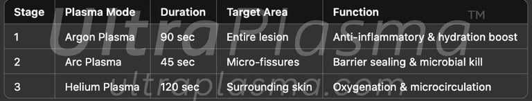 • UltraPlasma™ Arc Plasma Mode: Delivers concentrated electrical micro-arcs for epidermal and microbial surface disruption.